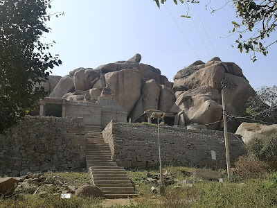 Marxem amb la moto a l'altra banda del riu. Arrossars, el pont que creua Tungabhadra. Ens dirigim a Anegondi i entrem al fort anomenat Vali Killa i ens endinsem a una mena de peregrinació que ens porta a un temple entre roques. Sembla una secta. Trobem les ladies angleses que s'estan al Saptami Guesthouse.
